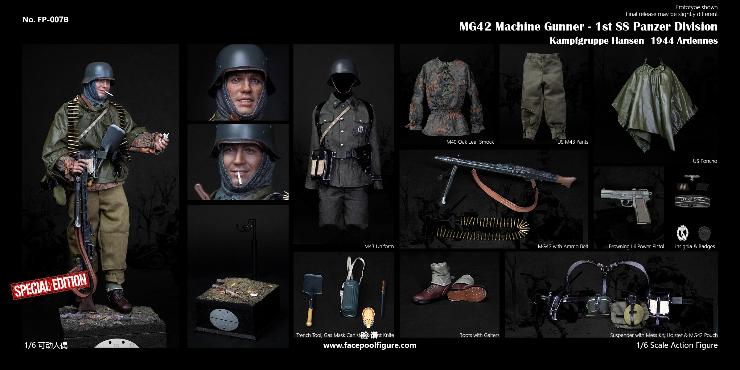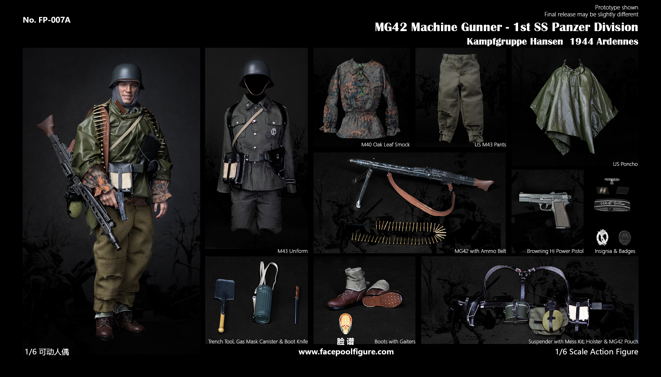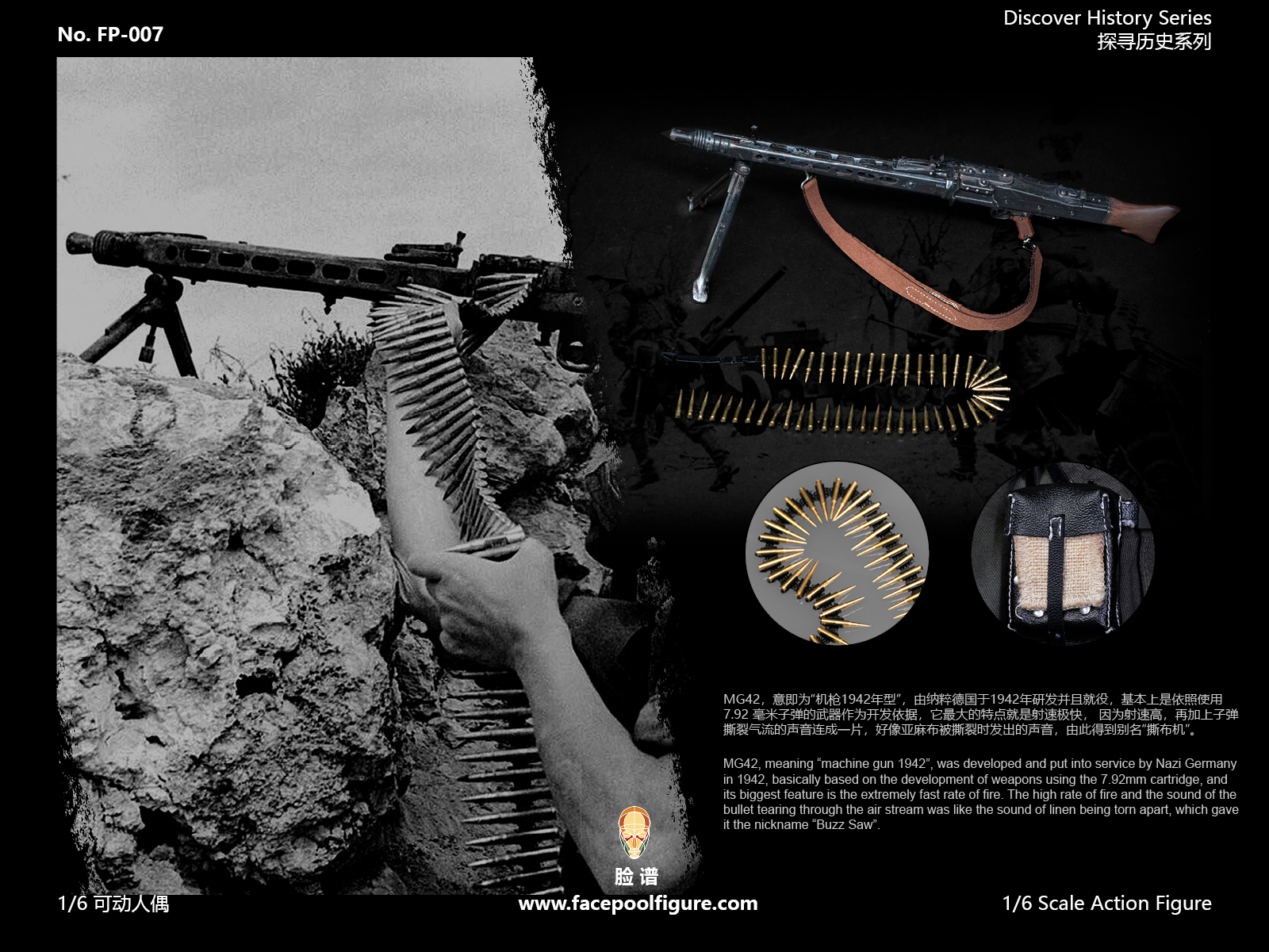 Facepoolfigure 1/6 Action Figure – Discover History Series MG42 Machine Gunner at Ardennes